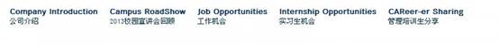 4、登錄賬戶(hù)后,可查看頁(yè)面上方菜單欄,分別列舉了奔馳汽車(chē)公司現(xiàn)正進(jìn)行的校園招聘項(xiàng)目,包括一般面向應(yīng)屆畢業(yè)生的工作機(jī)會(huì)、招聘實(shí)習(xí)生以及管理培訓(xùn)生的相關(guān)事項(xiàng)。求職者可根據(jù)個(gè)人喜好和需要,點(diǎn)擊項(xiàng)目進(jìn)行查看。