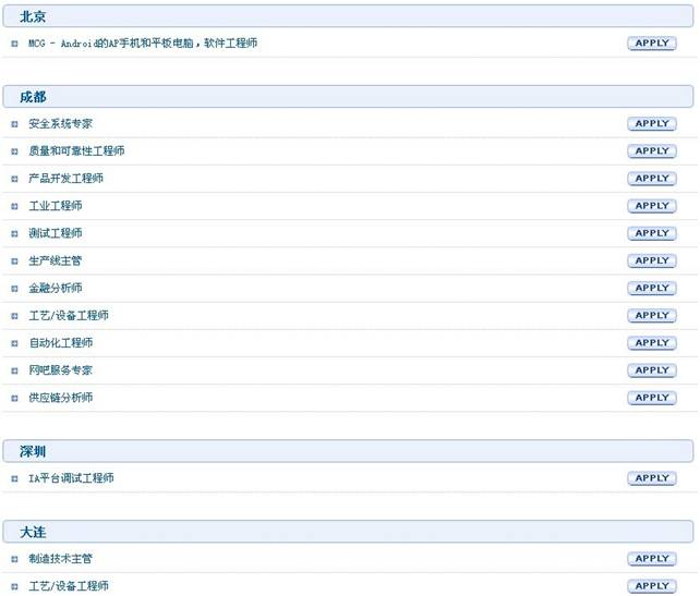 第一:登錄英特爾官網(wǎng)或是應屆畢業(yè)生YJBYS校園招聘,點擊招聘職位,挑選自己希望申請的職位: