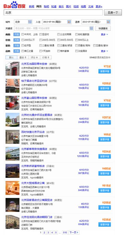 酒店查詢與預(yù)定:jiudian.baidu.com,北京比較大,建議求職者在來北京之前先選定某個商業(yè)區(qū),然后再選擇預(yù)定哪里的酒店。