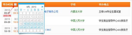 3、 你還可以點擊舉辦時間右側(cè)的小按鈕進行篩選,選擇你想要知道的某一天的宣講會信息,讓你在茫茫的信息海中,更加精準(zhǔn)地找到自己需要的信息。