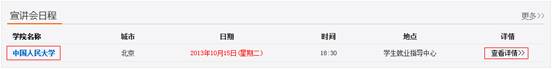 4、 選定名企,進入名企宣講會頁面后,點擊宣講會日程列表中的學(xué)校名稱或右側(cè)的“查看詳情”