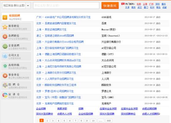 接下來我們將對排名前三的網(wǎng)站的校園招聘頻道進行簡單的介紹。