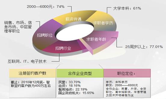 智聯(lián)招聘網(wǎng)(zhaopin.com)成立于1997年,是國內(nèi)最早、最專業(yè)的人力資源服務(wù)商之一。作為中國領(lǐng)先的人才網(wǎng)站,為個人用戶提供網(wǎng)上求職、簡歷中心、求職指導(dǎo)等個性化服務(wù);為企業(yè)客戶提供以網(wǎng)絡(luò)招聘為核心的人才解決方案。無論是求職者還是企業(yè)HR都可以獲得智聯(lián)招聘提供的專業(yè)人才招聘服務(wù)。2012年智聯(lián)招聘網(wǎng)站分析如下: