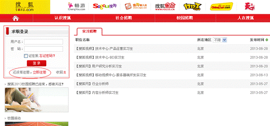 登錄搜狐官網(wǎng)校園招聘網(wǎng)申入口,注冊會員;