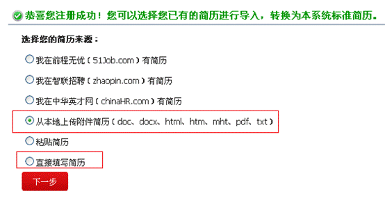 建議選擇上傳簡歷或者直接填寫簡歷,也還可以選擇在招聘網(wǎng)里的簡歷: