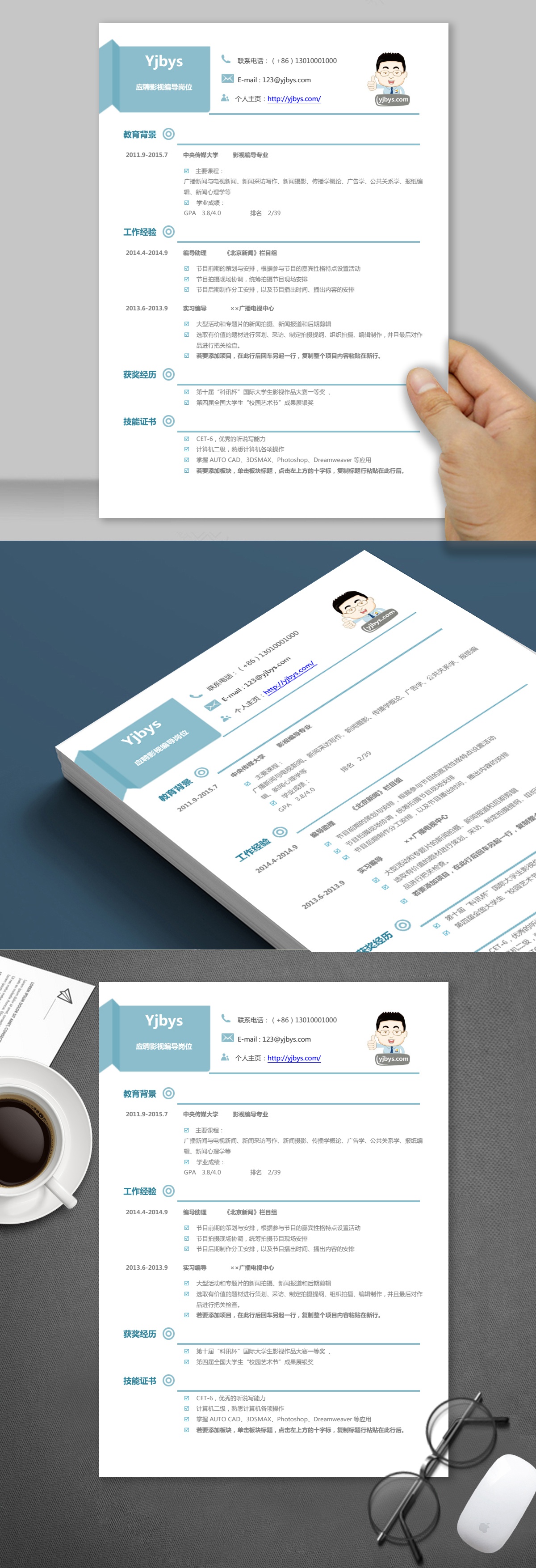 A463簡約藍(lán),褐,綠簡歷模板