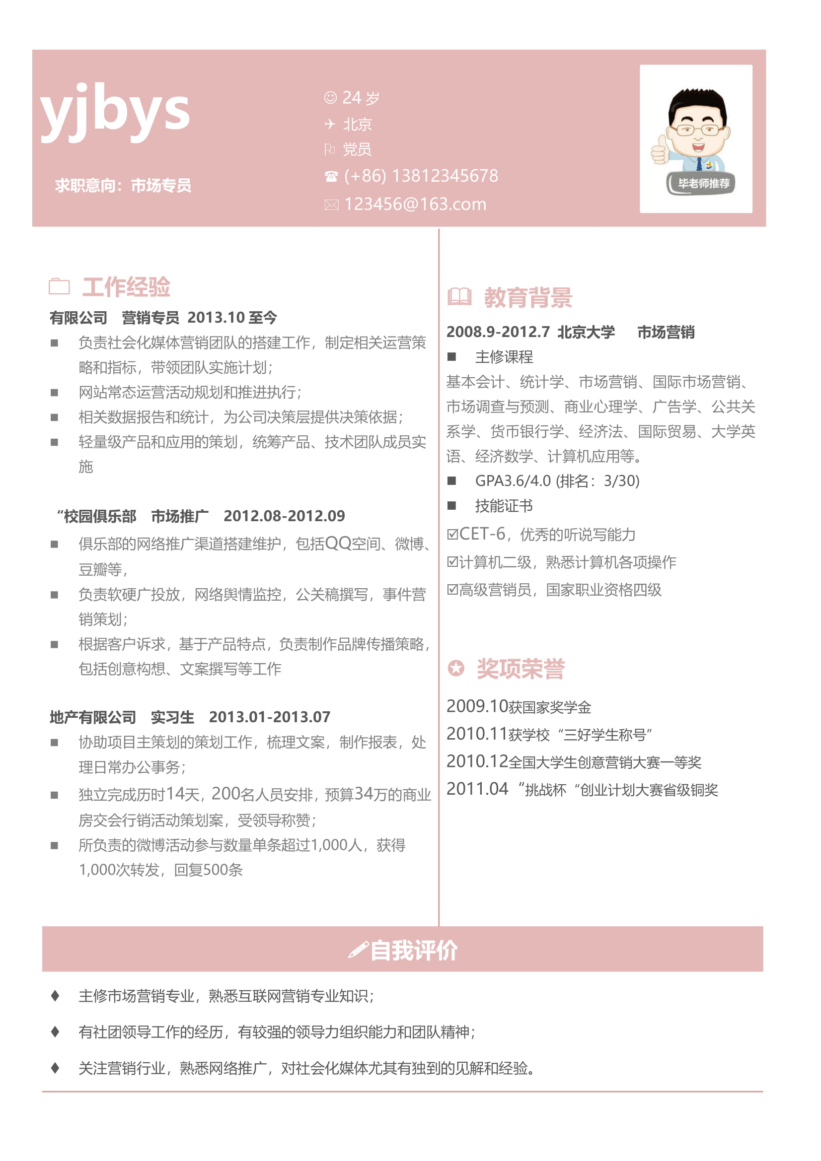 A560常用粉藍(lán)簡(jiǎn)歷模板