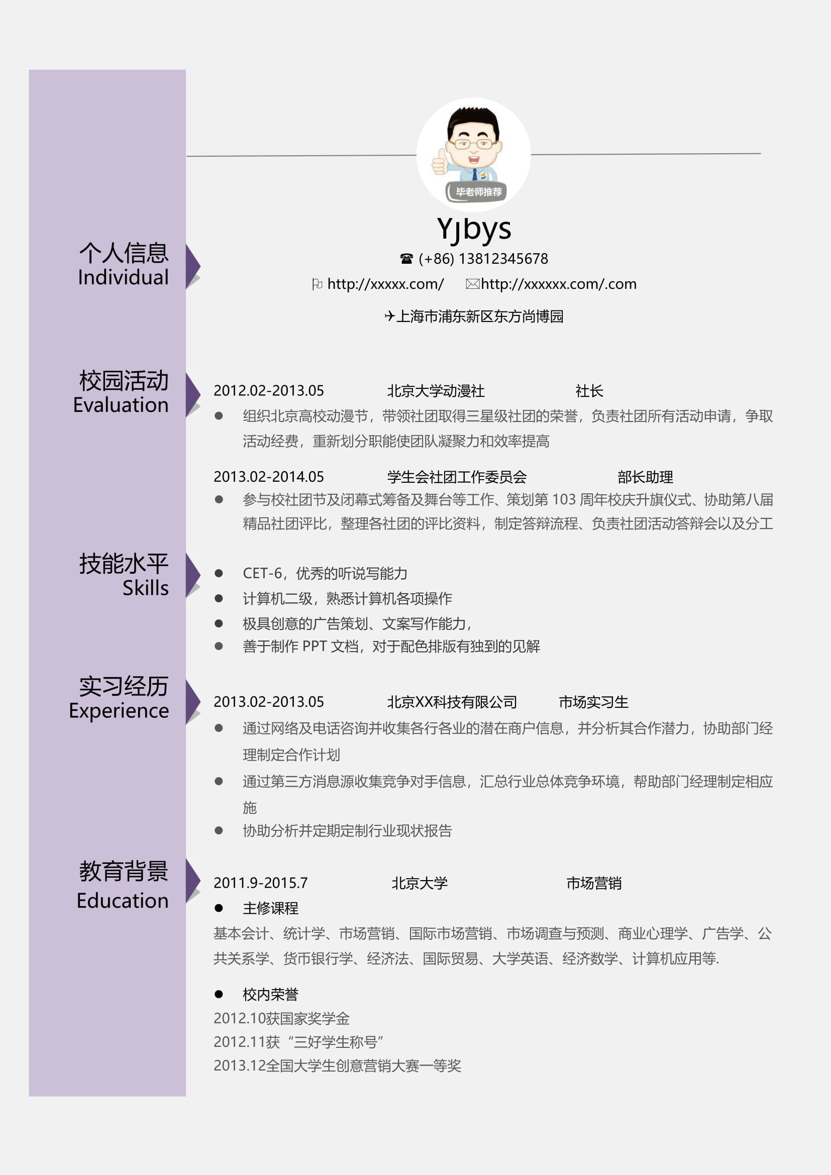A599創(chuàng)意淺紫,淡藍(lán),粉紅簡(jiǎn)歷模板