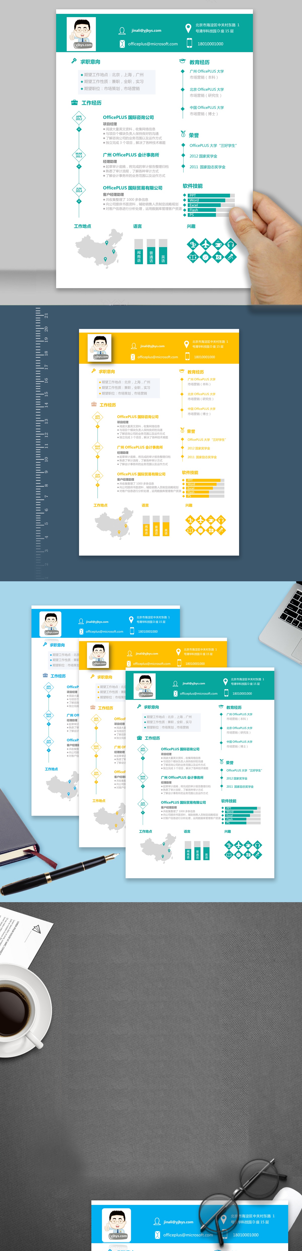 A159常用藍,橙,綠簡歷模板