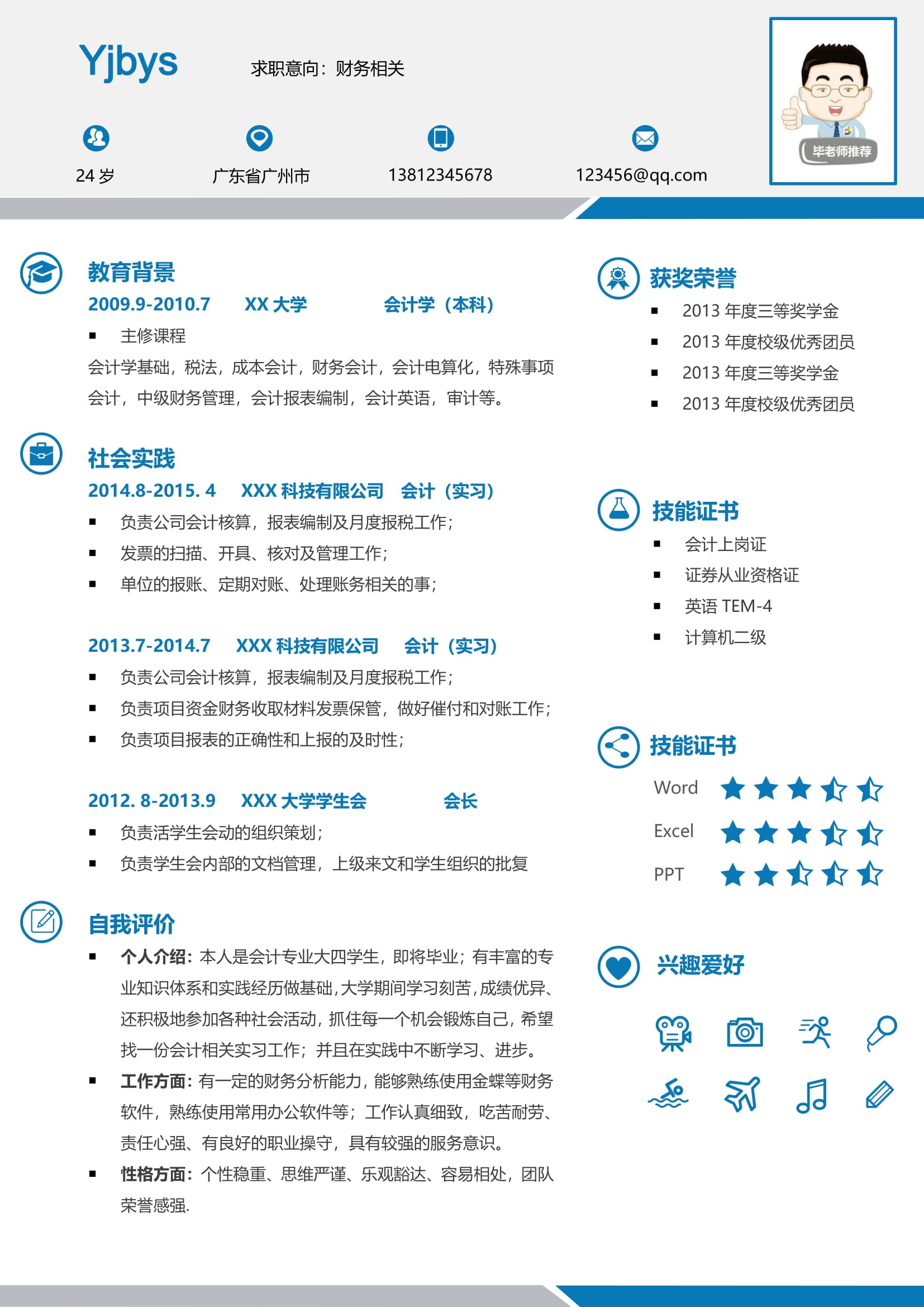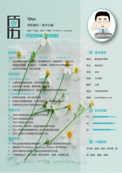 A560常用粉藍(lán)簡歷模板