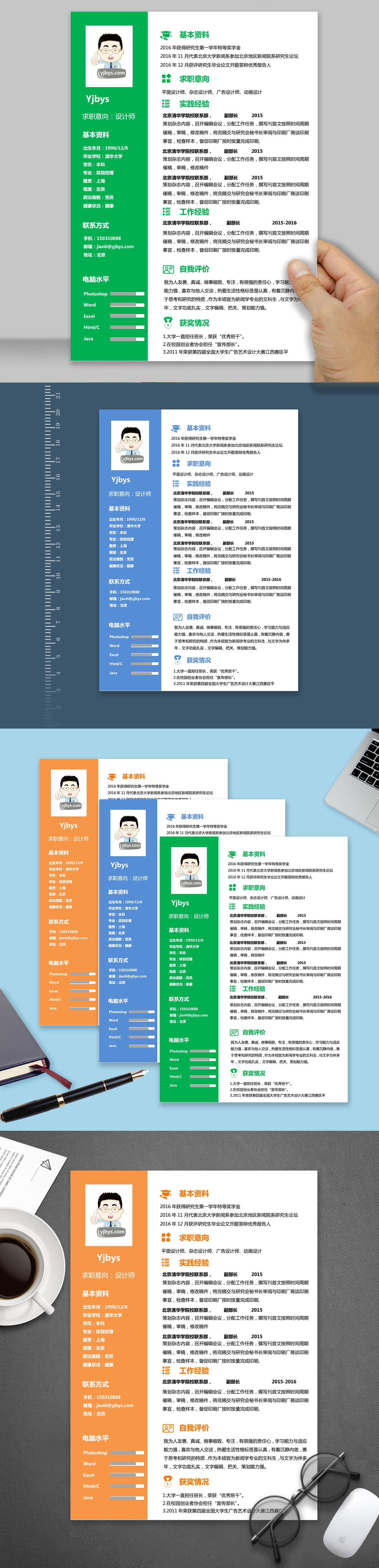 A079常用簡(jiǎn)歷模板藍(lán),橙,綠