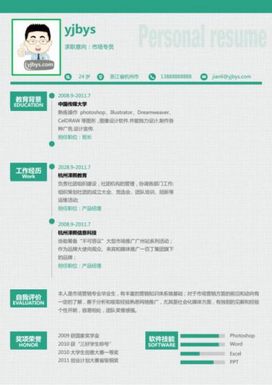 A186常用綠,褐,藍(lán)簡(jiǎn)歷模板