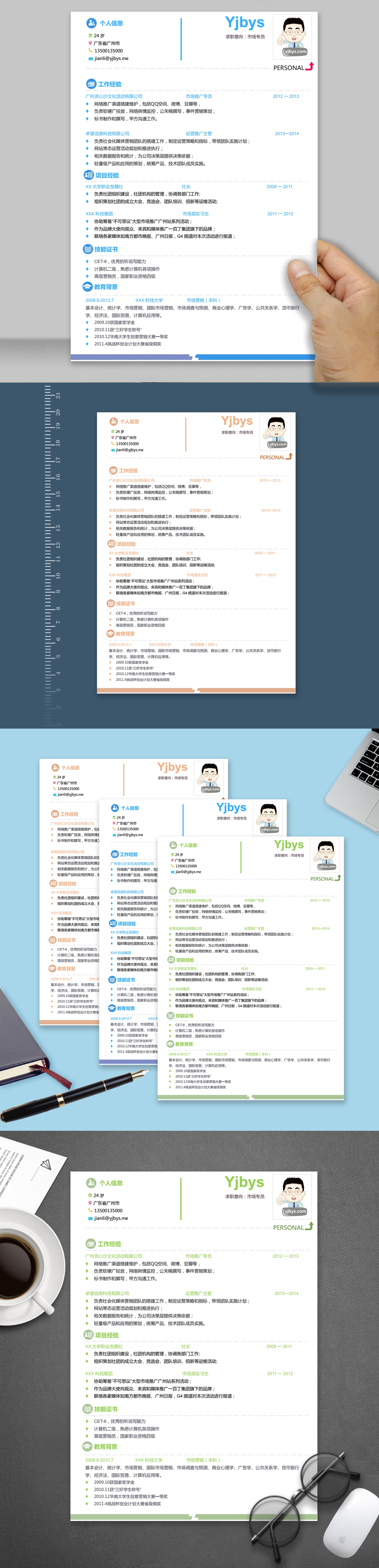 A570常用淺藍(lán),淺橙,淺綠簡歷模板