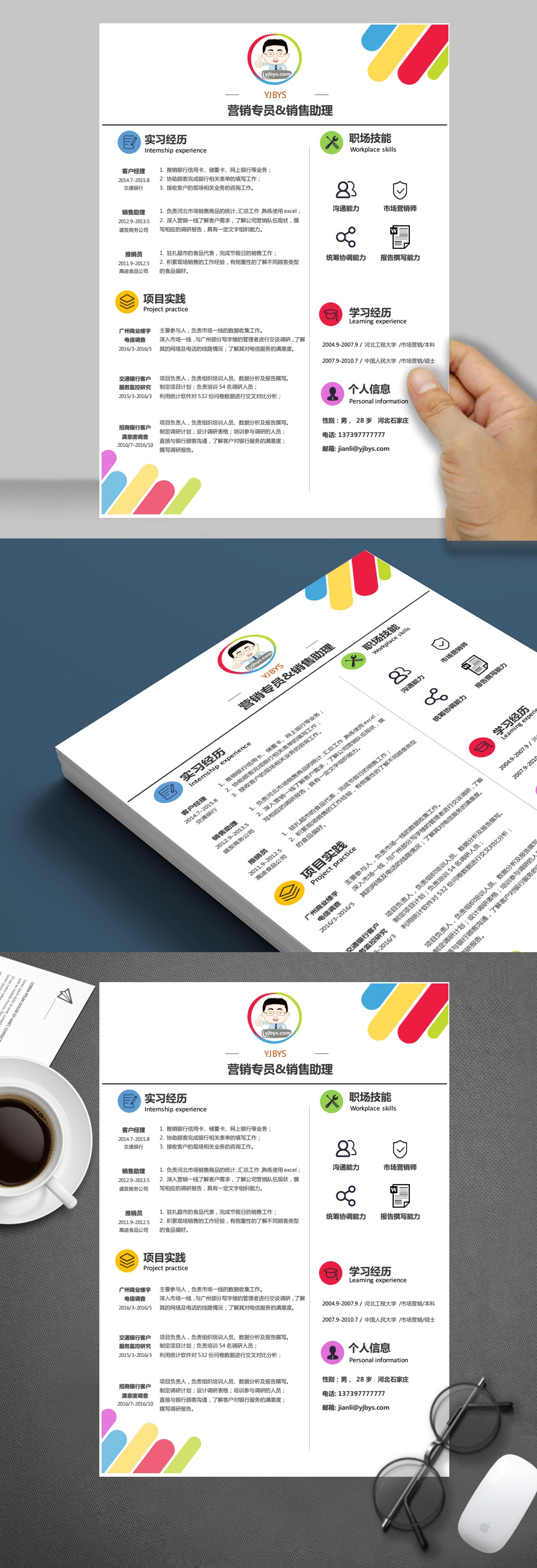 A446簡約綠,褐,藍簡歷模板