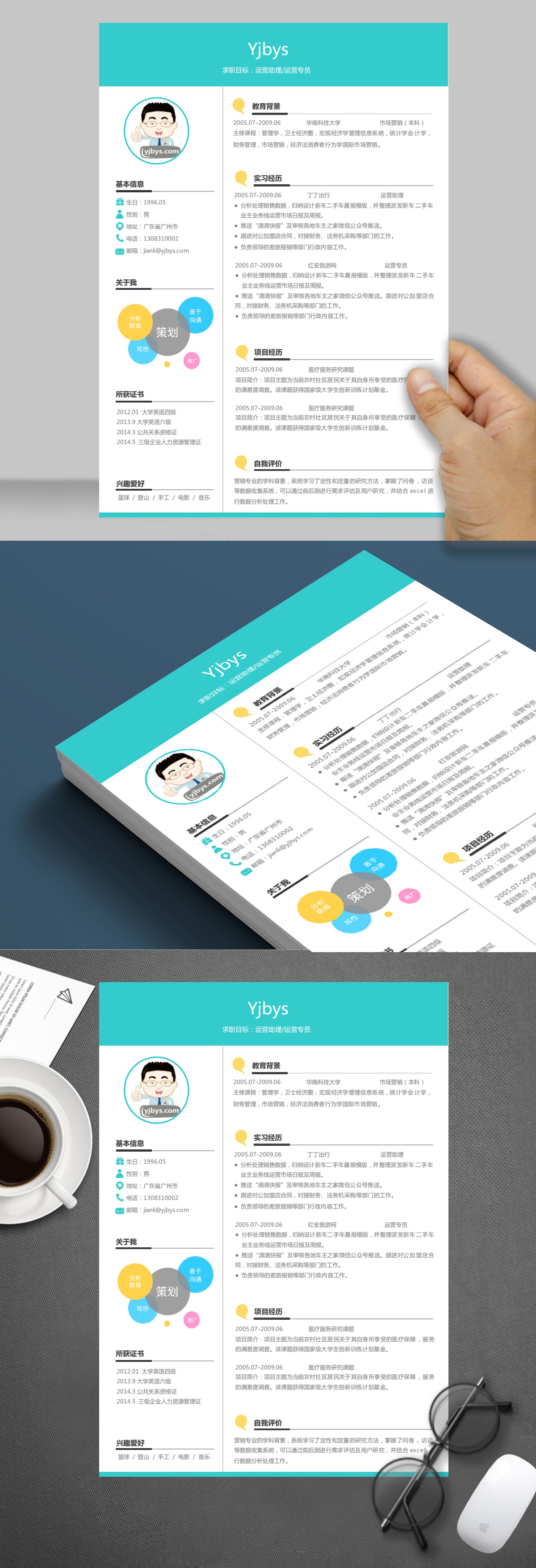 A186常用綠,褐,藍(lán)簡(jiǎn)歷模板