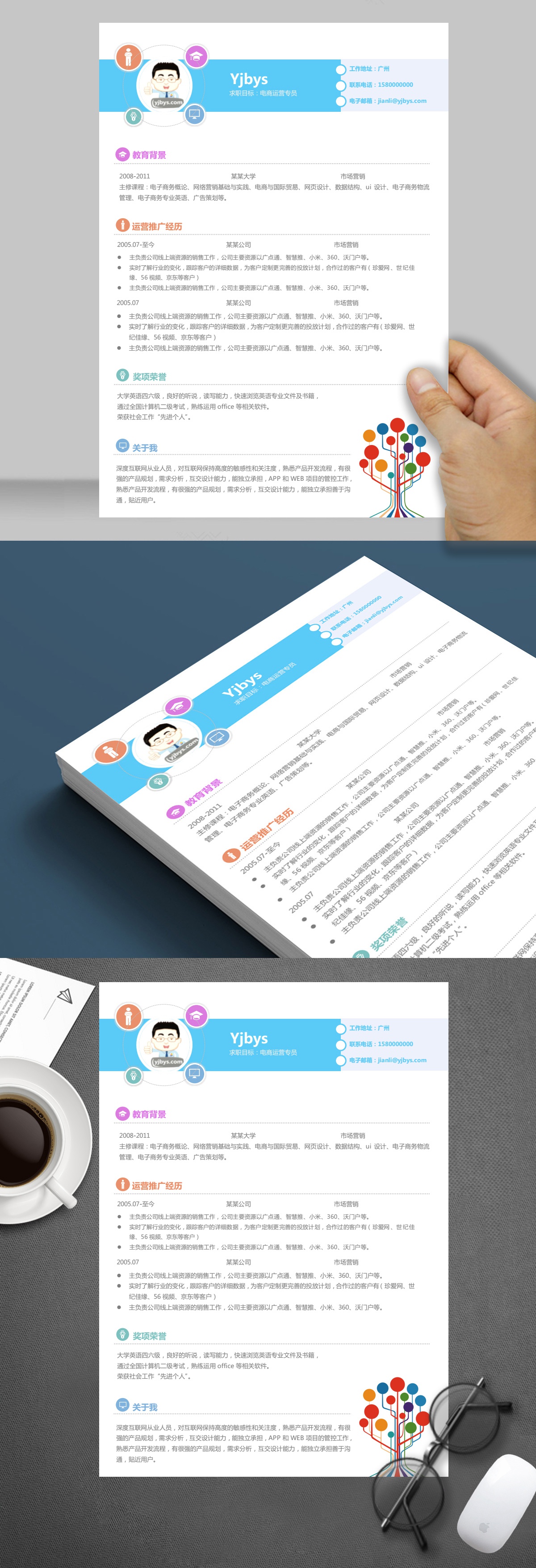 A419簡(jiǎn)約藍(lán),橙,綠簡(jiǎn)歷模板