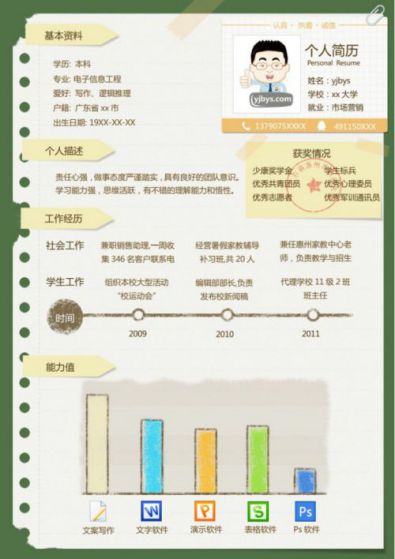 A031框架綠色,灰色,藍(lán)色簡歷模板
