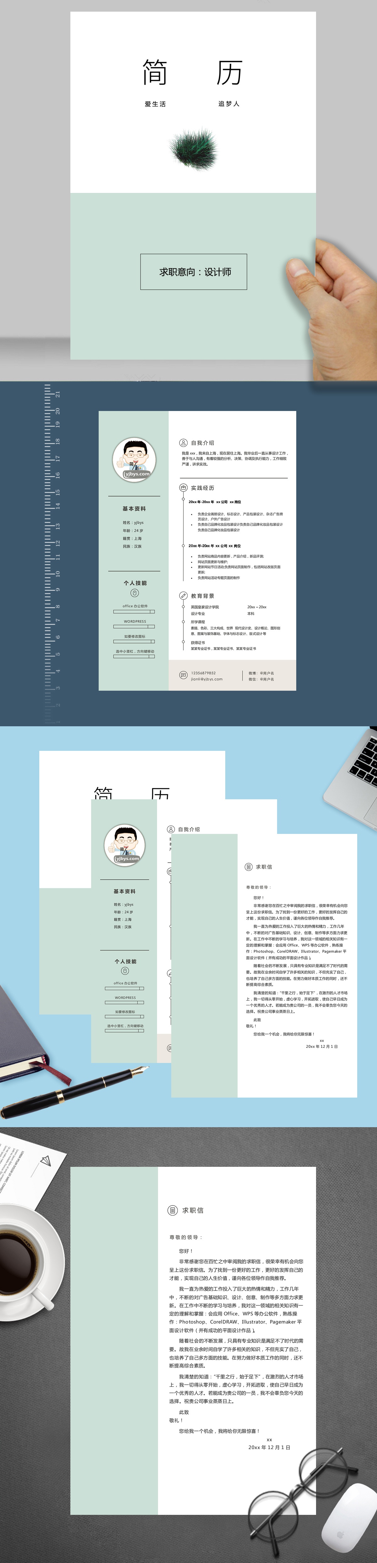 A123簡(jiǎn)約褐,藍(lán),綠簡(jiǎn)歷模板