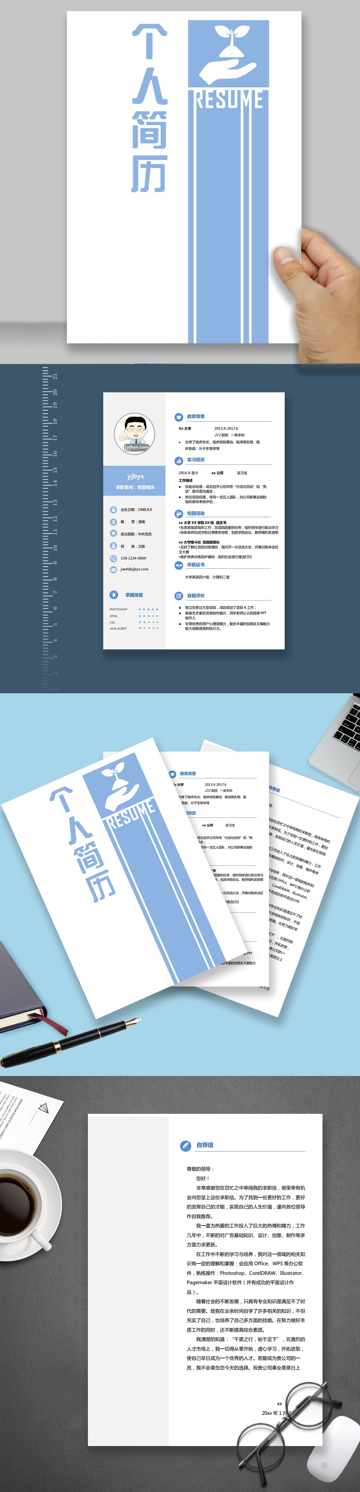 A640套裝青藍(lán)簡(jiǎn)歷模板