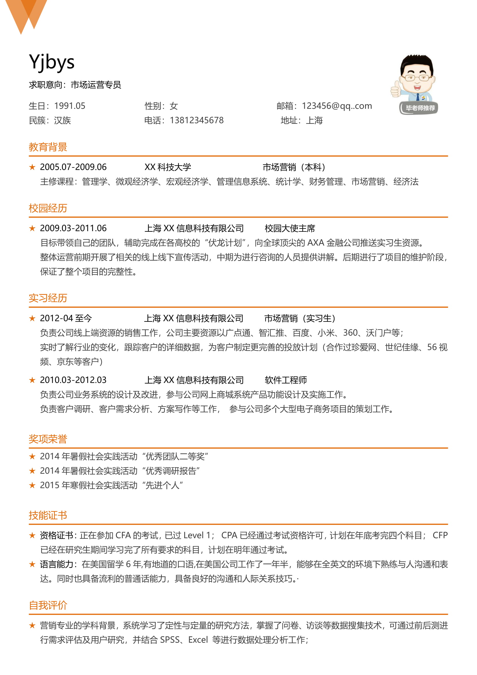 A593常用橙色,藍(lán)色,綠色簡(jiǎn)歷模板
