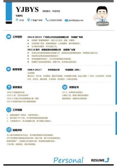 A586常用青藍(lán)簡(jiǎn)歷模板
