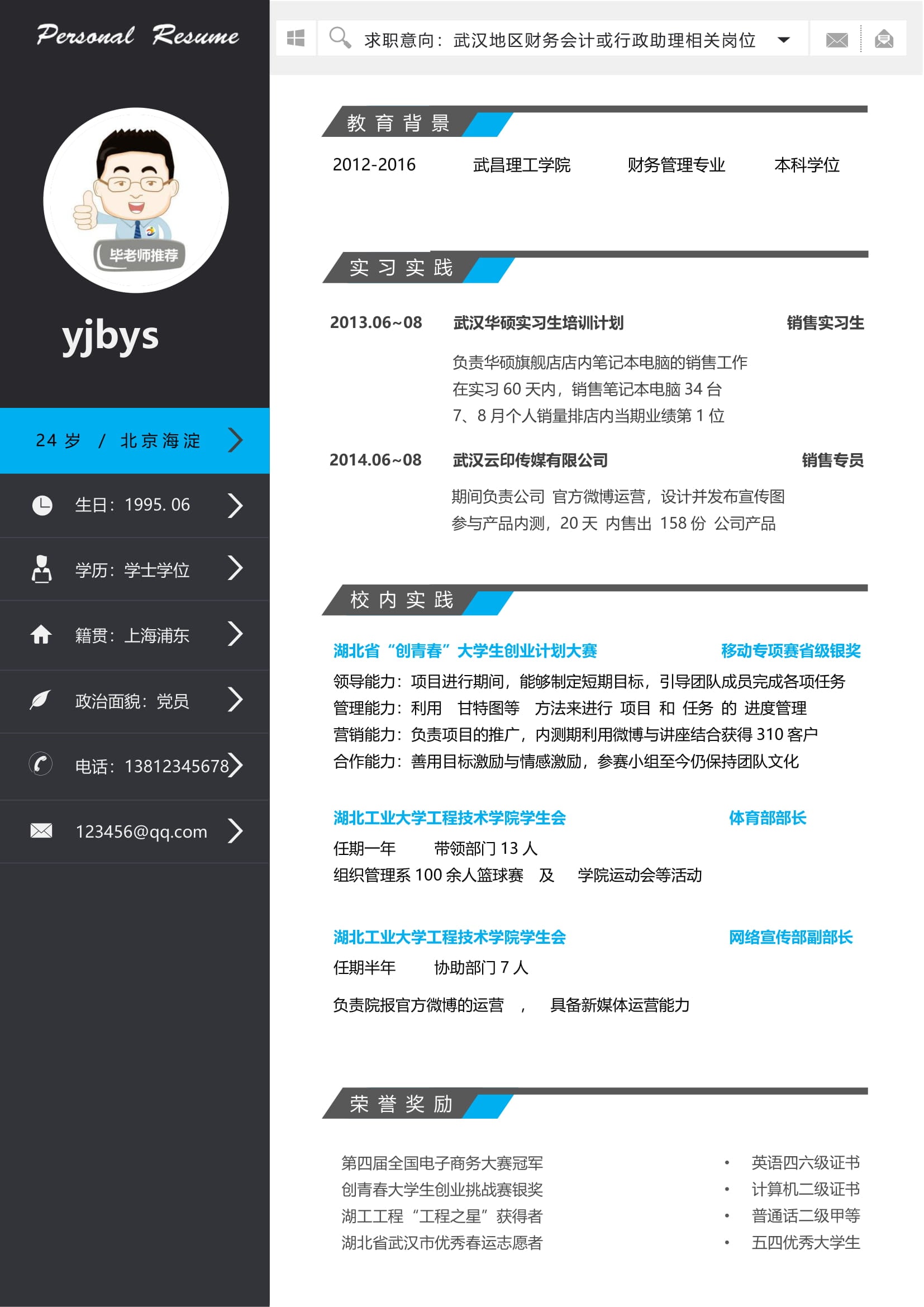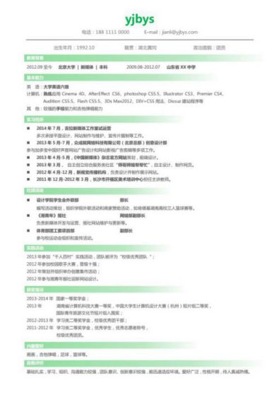A095常用藍(lán),黃,綠簡(jiǎn)歷模板