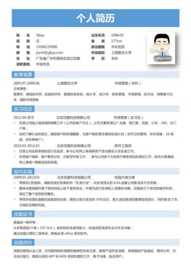 A218英文簡歷模板