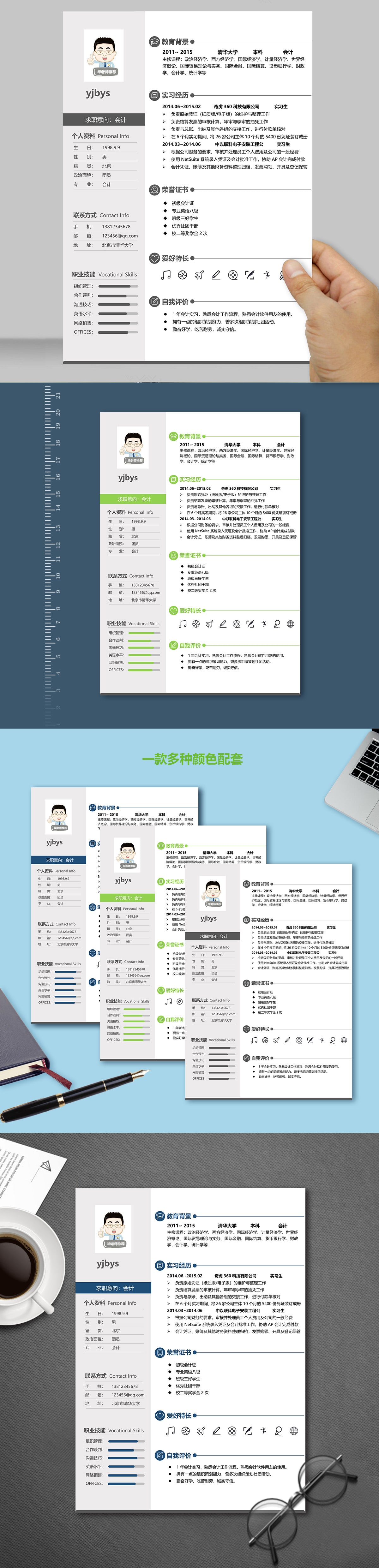 A432簡約綠,褐,藍(lán)簡歷模板