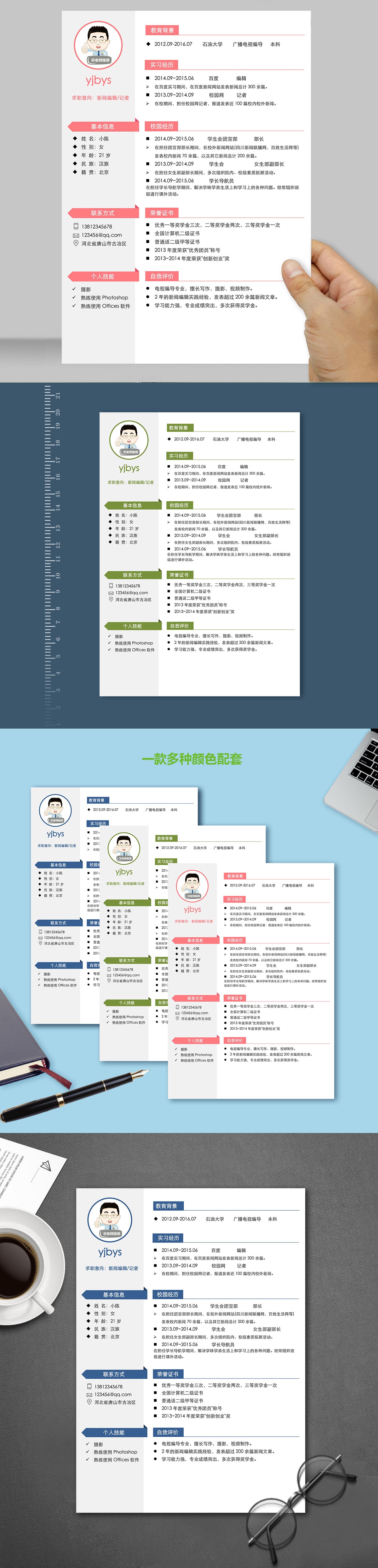 A583常用簡(jiǎn)歷模板粉紅,深藍(lán),深綠