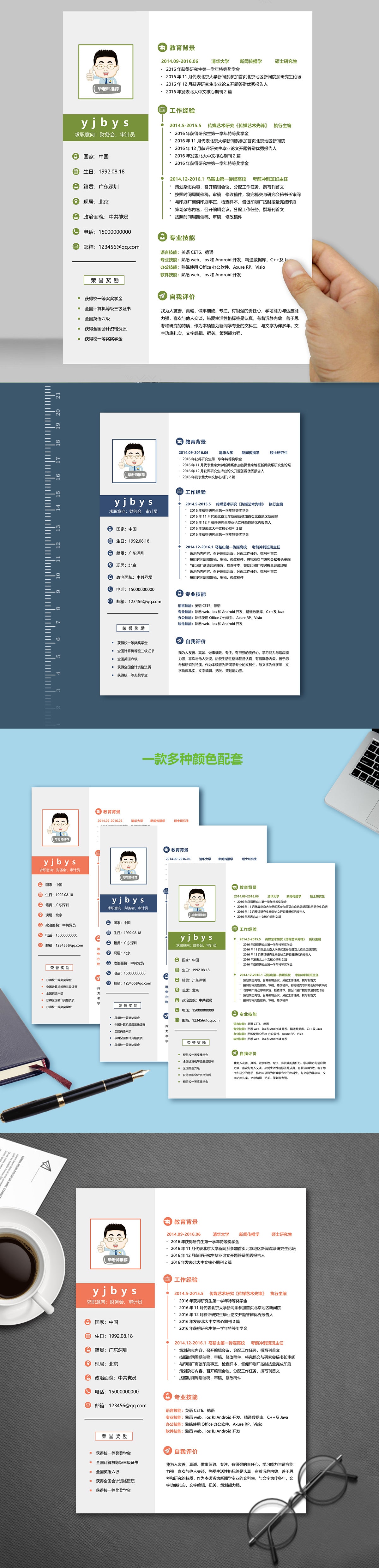 A029簡潔橘色,藍(lán)色,綠色簡歷模板