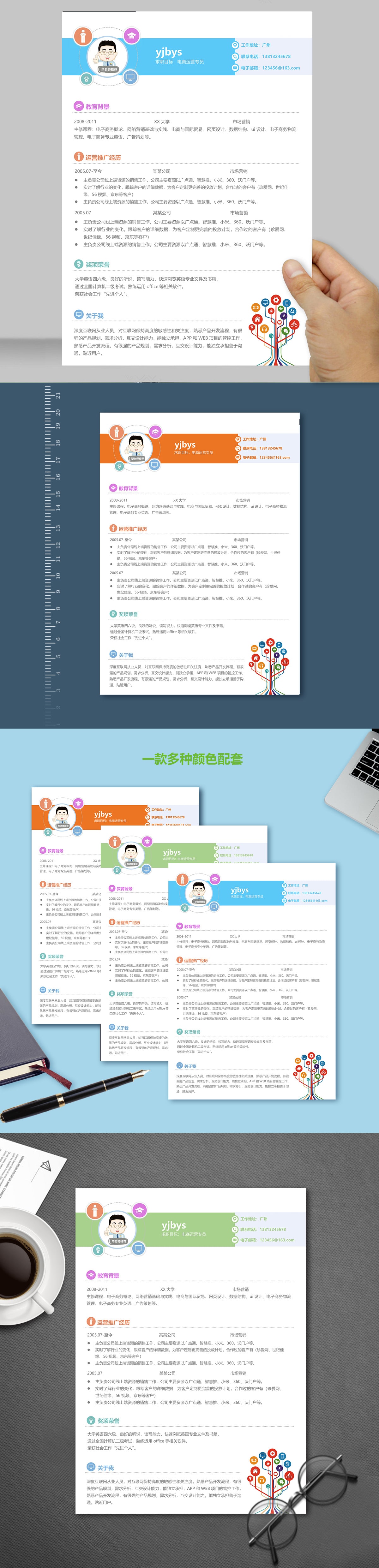 A086常用藍,橙,綠簡歷模板