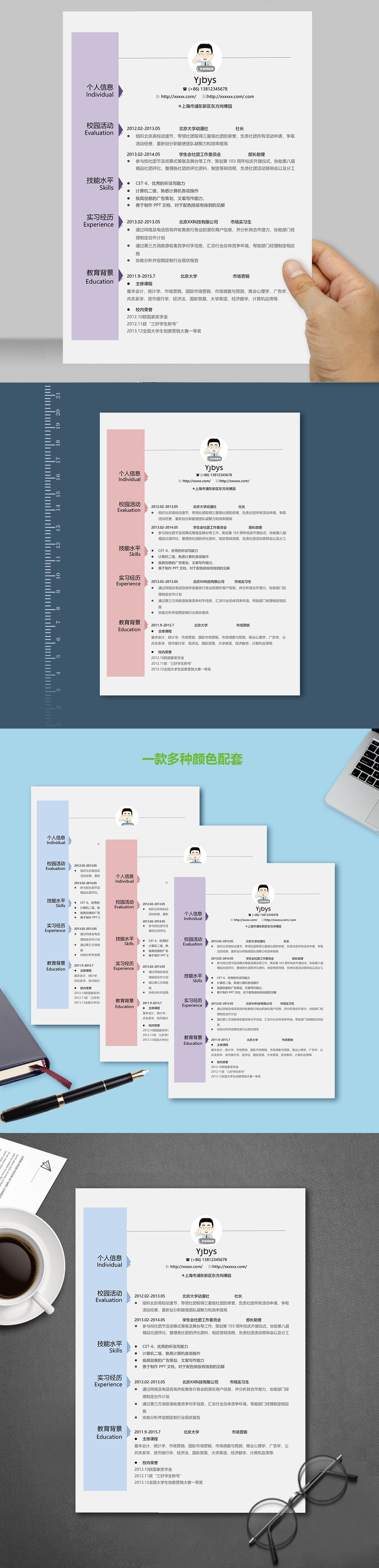 A117簡約藍(lán),紅,綠簡歷模板