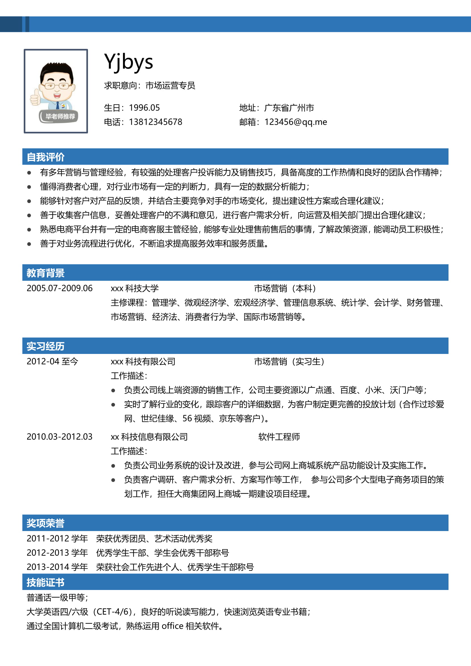 A560常用粉藍(lán)簡(jiǎn)歷模板