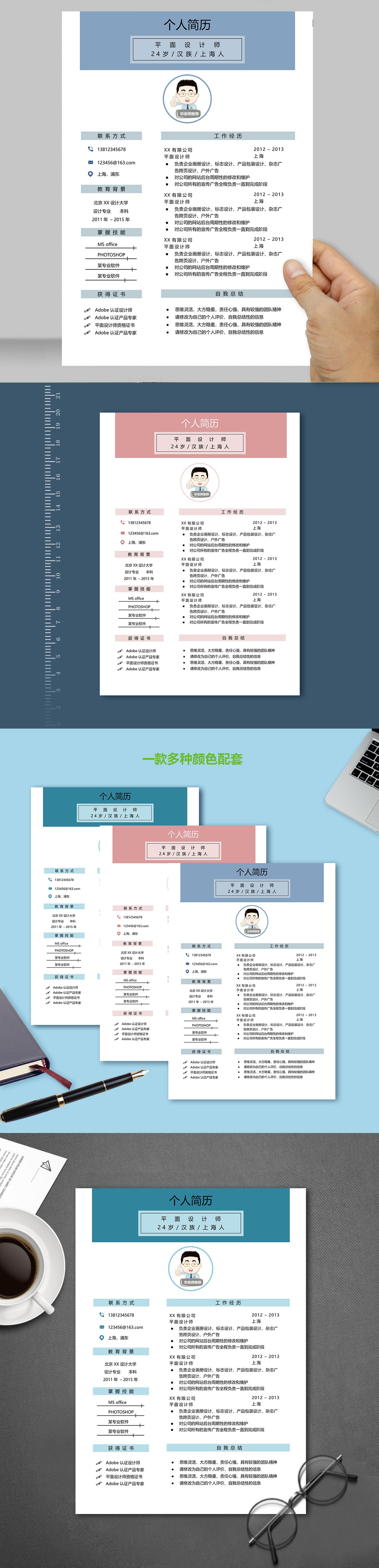 A568常用天藍(lán),青灰,粉紅簡歷模板