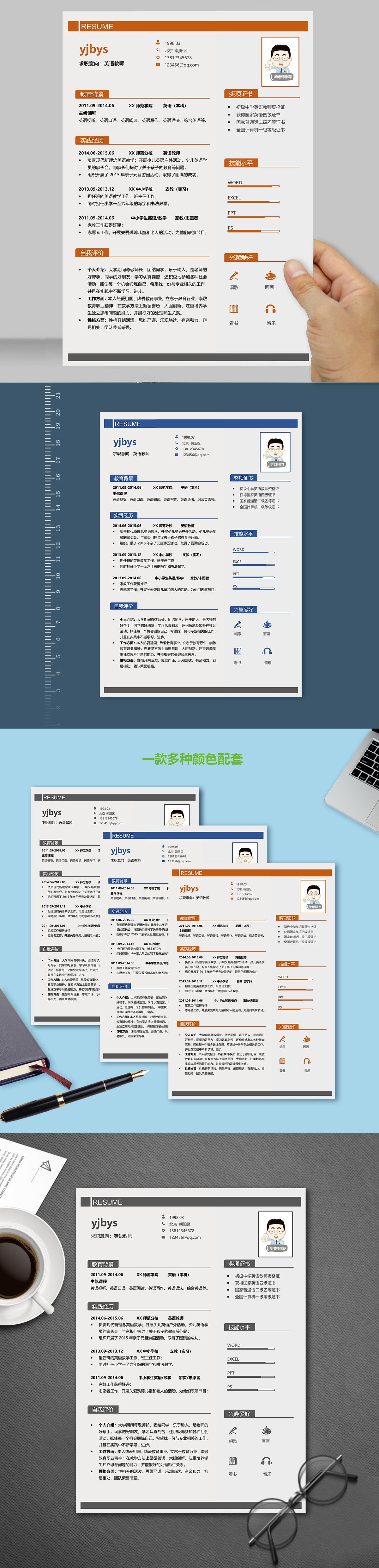 A629簡(jiǎn)約紅橙,淺藍(lán),青綠簡(jiǎn)歷模板