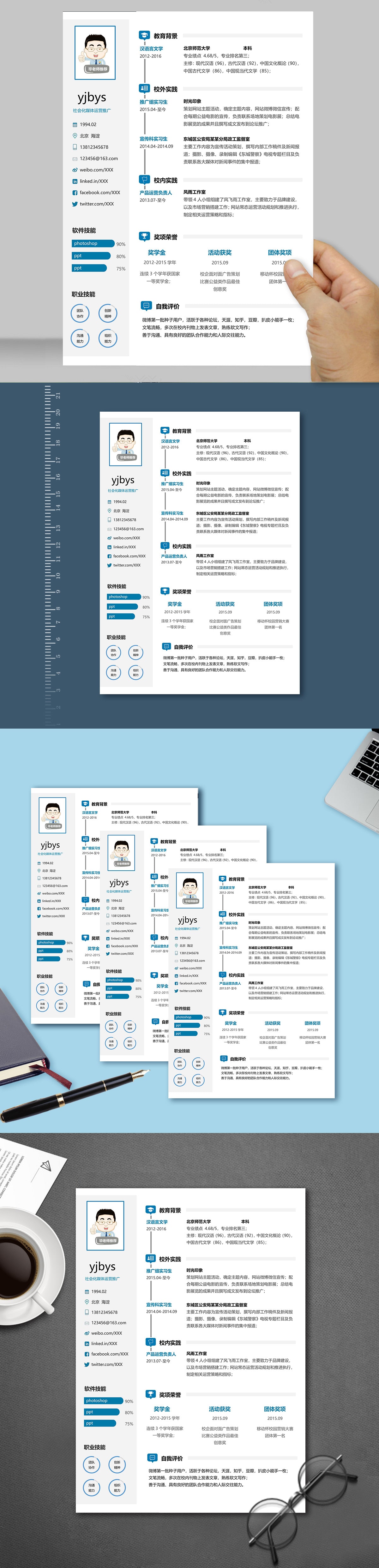 A067常用青,褐,藍簡歷模板