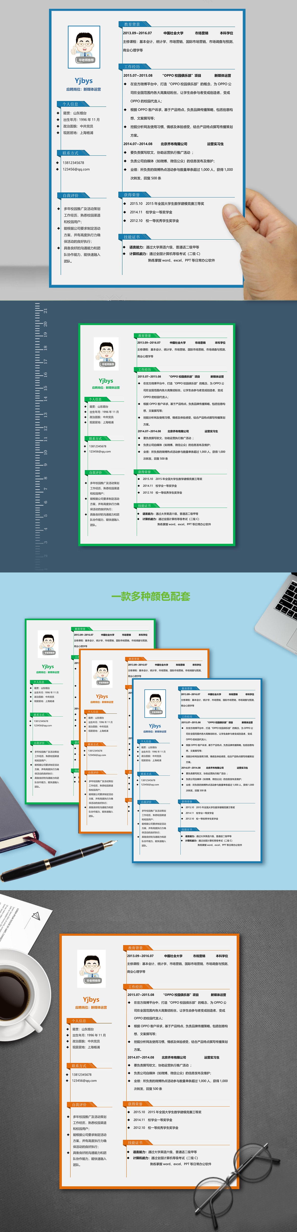 A628簡(jiǎn)約簡(jiǎn)歷模板青藍(lán),紅橙,綠色
