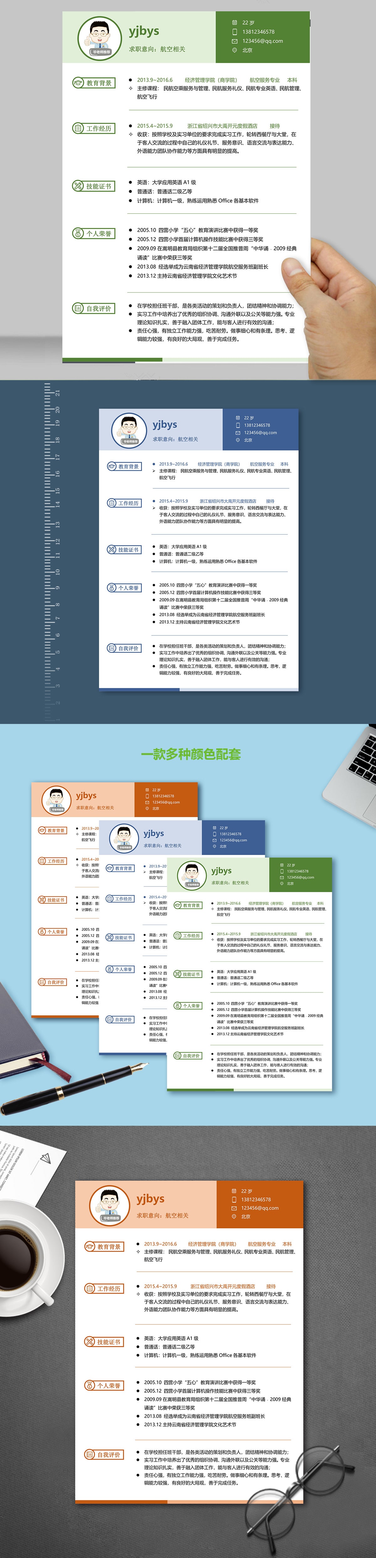 A423簡(jiǎn)約藍(lán),灰,綠簡(jiǎn)歷模板