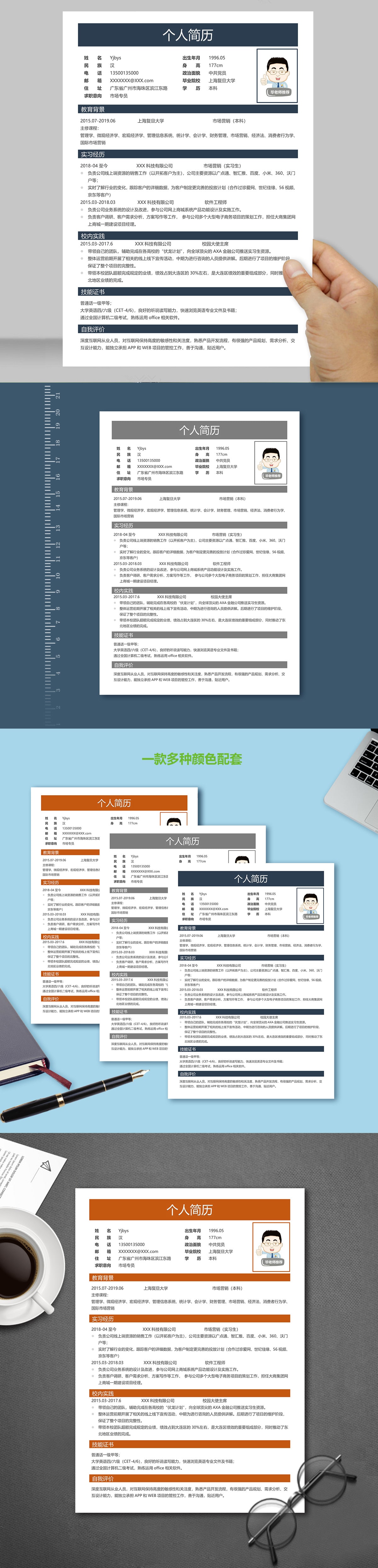 A077常用藍,褐,紅簡歷模板