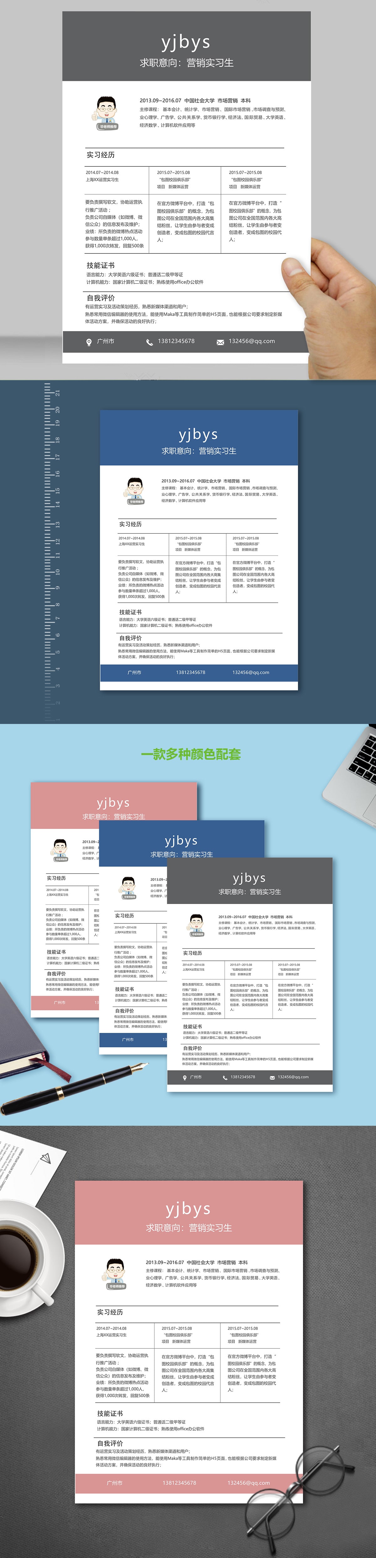 A171表格藍,灰,綠簡歷模板
