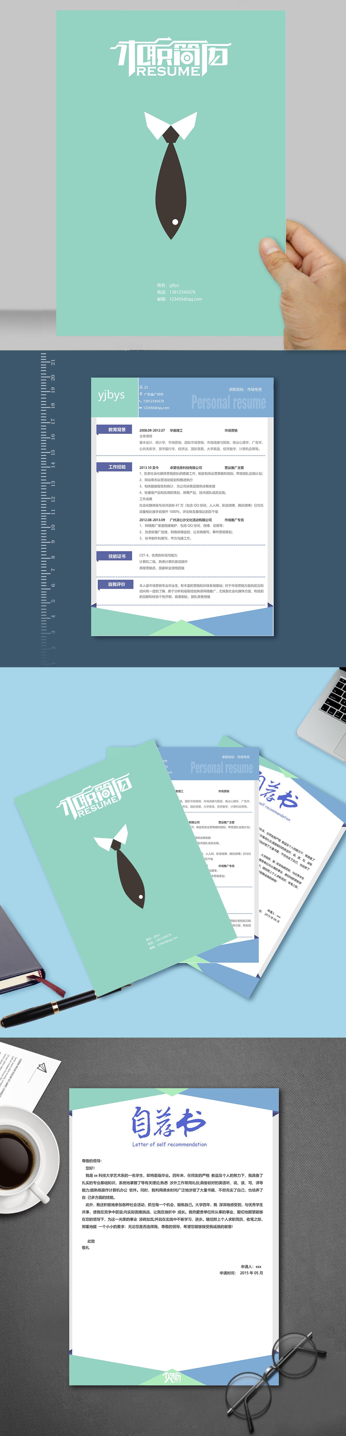 A643套裝青色簡歷模板