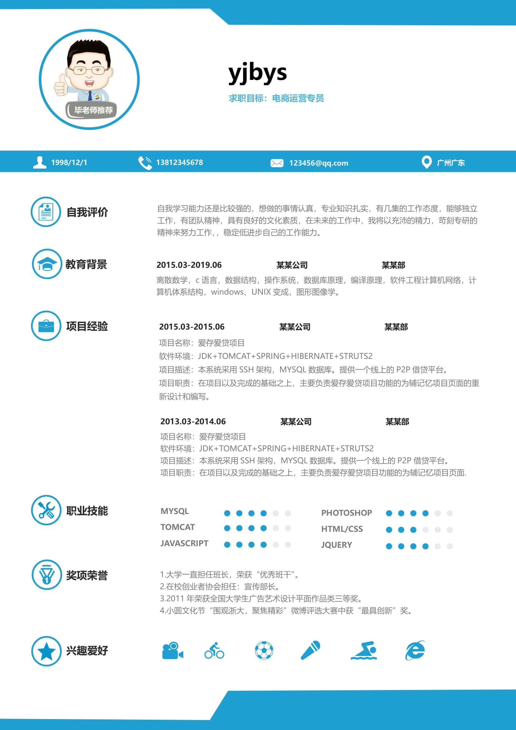 A136常用藍(lán),黃,綠簡歷模板