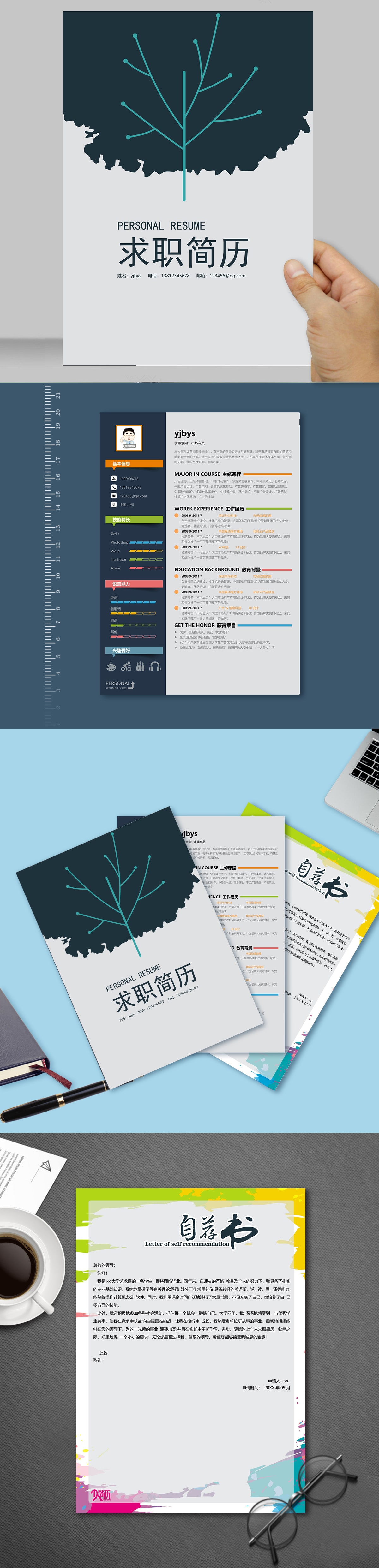 A629簡約紅橙,淺藍(lán),青綠簡歷模板