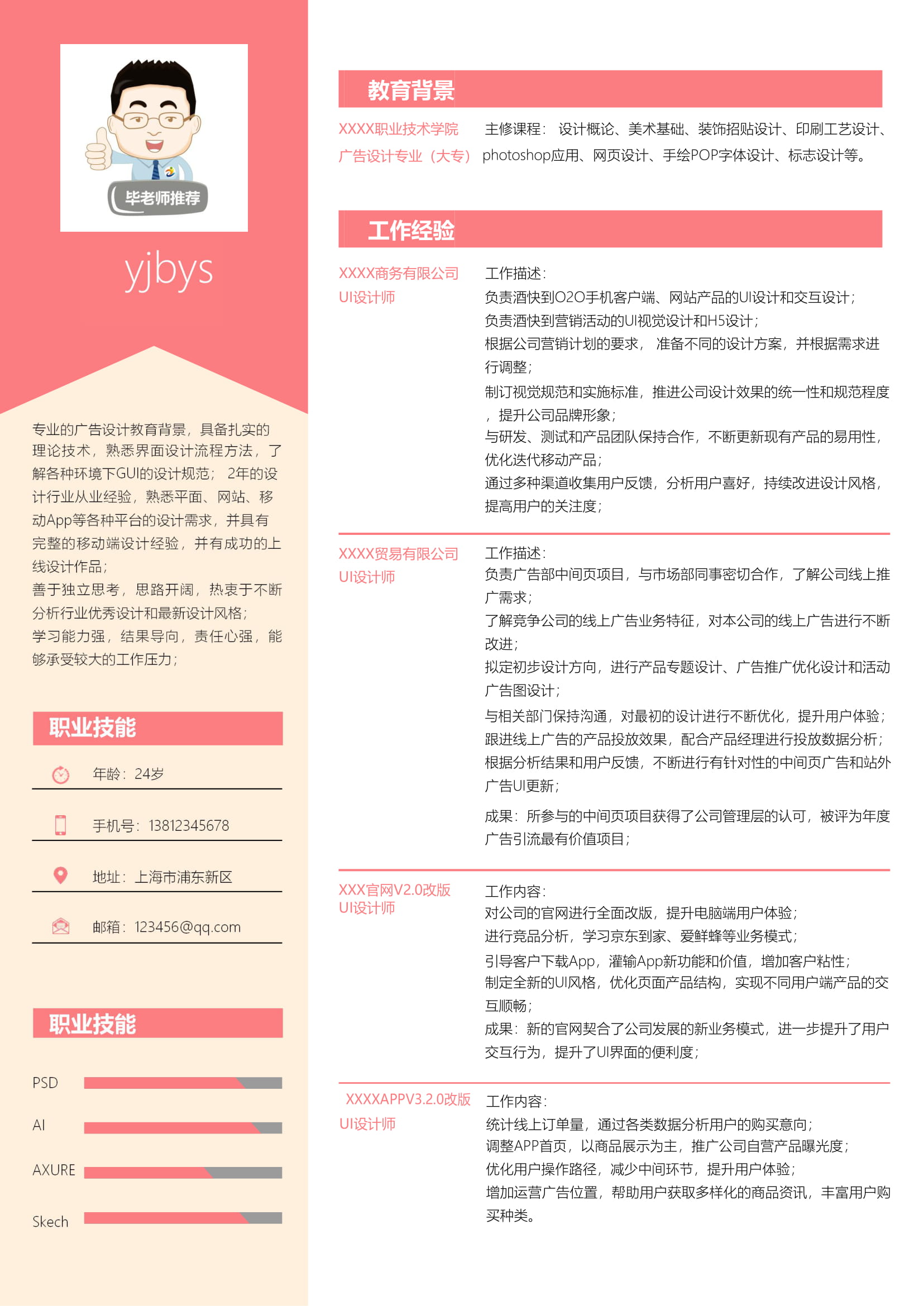 A592常用粉色簡(jiǎn)歷模板